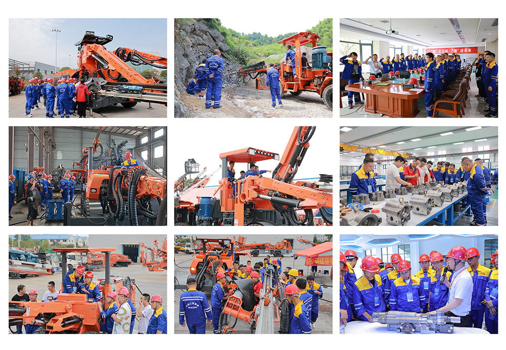 實操培訓(xùn):設(shè)備操作、鑿巖機的拆裝和易損件更換、設(shè)備保養(yǎng)和簡單維修,通過培訓(xùn)老師的細(xì)心教學(xué)和現(xiàn)場示范,親自上手操作設(shè)備,讓學(xué)員們更好地學(xué)習(xí)到了設(shè)備原理、掌握了各項技能。結(jié)合模擬掌子面對眼、在巖石上掘進鉆孔等實操課程,為學(xué)員提升操作技能打下了堅實的基礎(chǔ)。